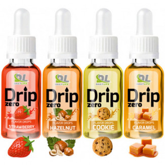 Drip zero è disponibile ai gusti: Biscotto, Caramello, Nocciola, Cocco.