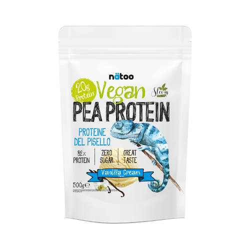 Le Vegan Pea Protein di Natoo sono un’ottima alternativa vegana per chi ha la necessità di integrare la propria alimentazione con una dose extra di proteine. Perfettamente solubili con un semplice shaker, sono sane e deliziose e possono essere consumate in qualsiasi momento della giornata. Possono anche essere utilizzate per preparare gustose ricette, quando si desidera aumentare il contenuto proteico dei cibi. Provale per preparare pancake, brownies, muffin o altri dolci che puoi decorare con il