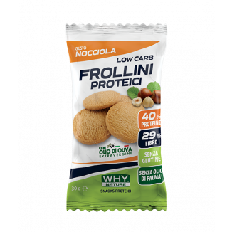I frollini proteici della linea Low Carb di WHYNature sono un alimento con il 40% DI PROTEINE, SENZA OLIO DI PALMA, SENZA GLUTINE ad ALTO CONTENUTO DI FIBRE.