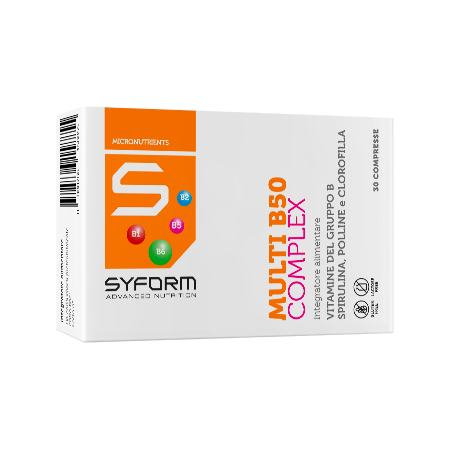 Multi B50 Complex contiene tutte le Vitamine del gruppo B, anche le meno note, ricavate da fonti naturali, quali la crusca di riso, alfa alfa, spirulina e clorofilla.