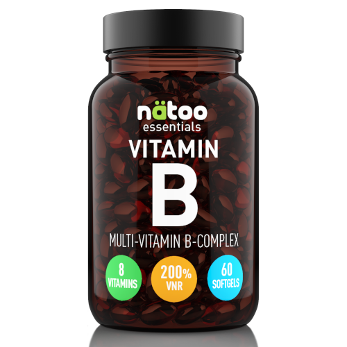 Vitamin B Complex softgels di Natoo Essentials è un integratore di Vitamine del gruppo B che apporta il 200% del valore di riferimento (VNR) di queste importanti vitamine. La formulazione di Vitamin B complex softgels comprende ben 8 vitamine, per un’integrazione sicura ed efficace e adatta a tutte le esigenze. Le vitamine del gruppo B sono estremamente utili grazie ai loro numerosi effetti benefici, tra i quali ricordiamo che contribuiscono alla riduzione della stanchezza e dell’affaticamento, al normale metabolismo energetico, forniscono un supporto del sistema immunitario e contribuiscono al normale metabolismo di proteine e zuccheri.